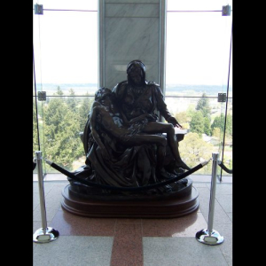 In 2009, the original bronze Pieta # 2/3 FP (foundry proof) was placed at The Sanctuary of Our Sorrowful Mother (The Grotto) in Portland Oregon. It is currently on display in the Meditation Chapel on the upper level of the sanctuary gardens.